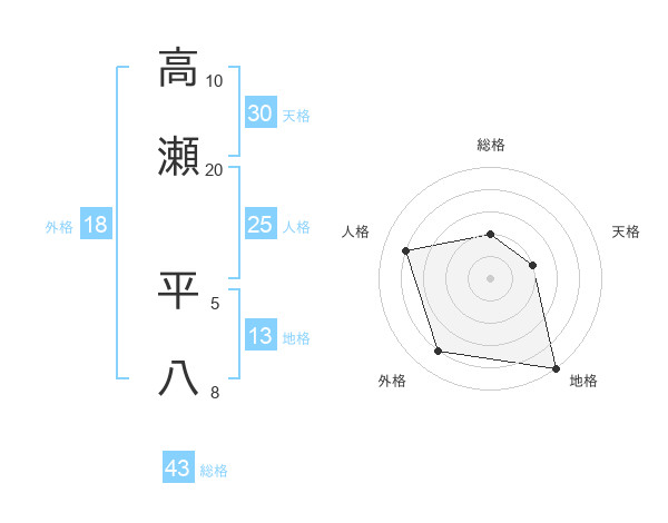 高瀬 平八さんを姓名の画数から五運を鑑定