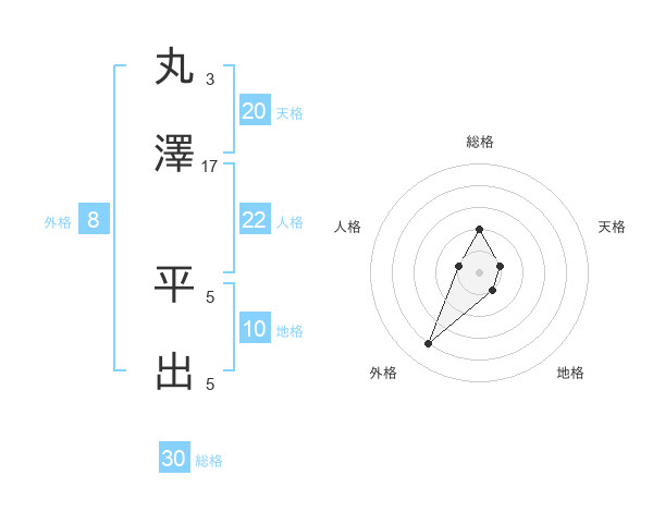 丸澤 平出さんを姓名の画数から五運を鑑定