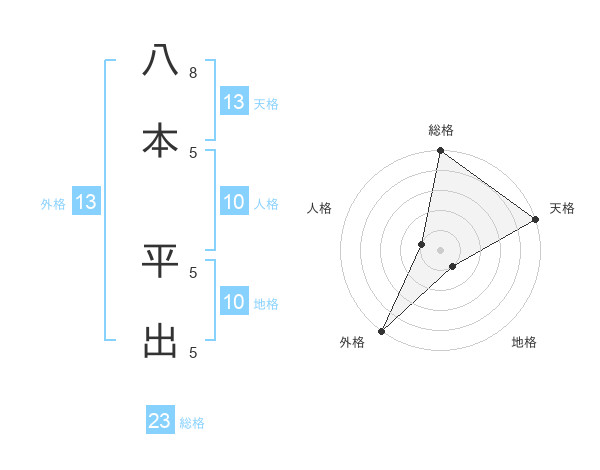 八本 平出さんの総格は23画の5点!