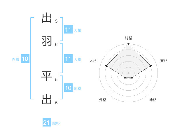 出羽 平出さんの総格は21画の5点!