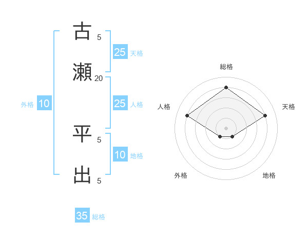 古瀬 平出さんを姓名の画数から五運を鑑定