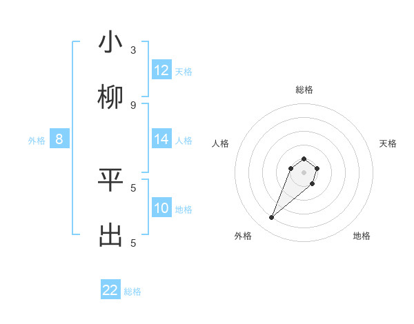 小柳 平出さんの総格は22画の1点!