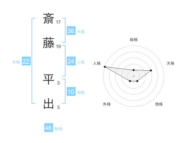 斎藤 平出さんを姓名の画数から五運を鑑定