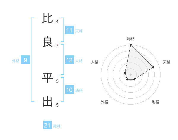 比良 平出さんの総格は21画の5点!