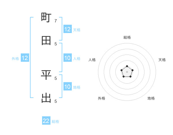 町田 平出さんの総格は22画の1点!