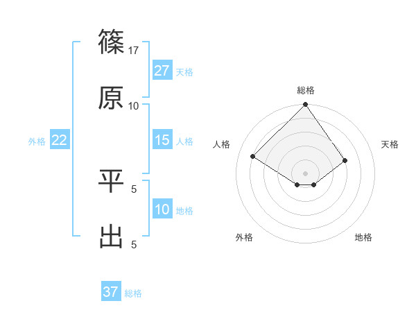 篠原 平出さんの総格は37画の5点!