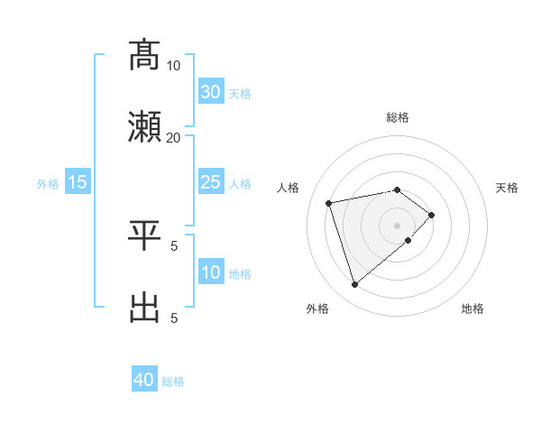 髙瀬 平出さんの総格は40画の2点!