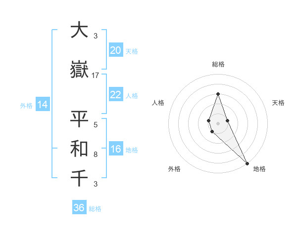 大嶽 平和千さんを姓名の画数から五運を鑑定