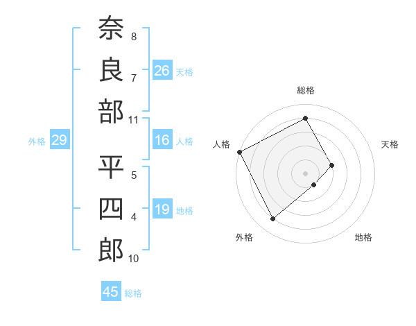 奈良部 平四郎さんの総格は45画の4点!