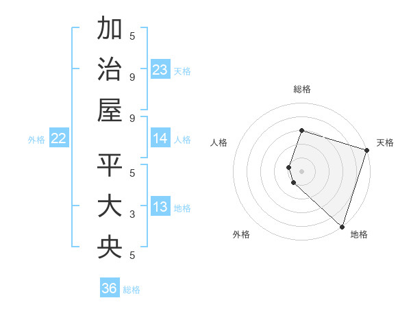 加治屋 平大央さんの天格は23画の5点!