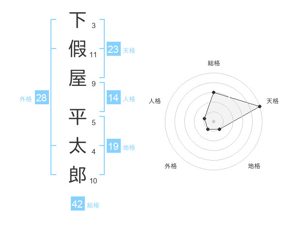 下假屋 平太郎さんの人格は14画の1点