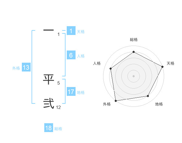 一 平弐さんの総格は18画の4点!
