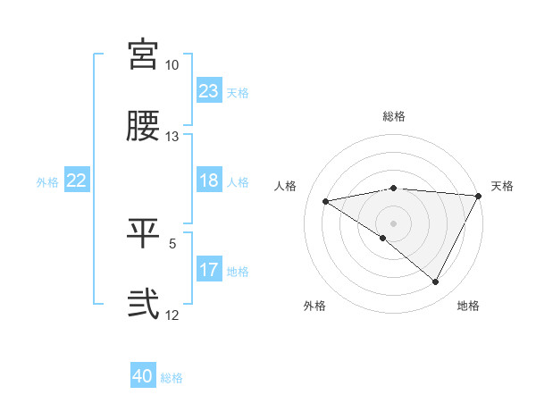 宮腰 平弐さんの天格は23画の5点!