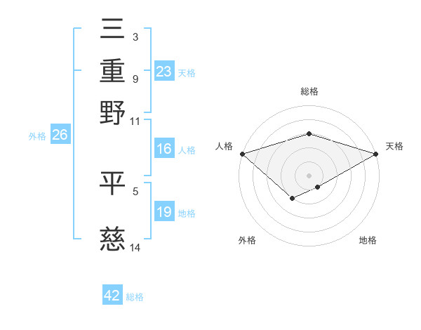 三重野 平慈さんの総格は42画の3点!