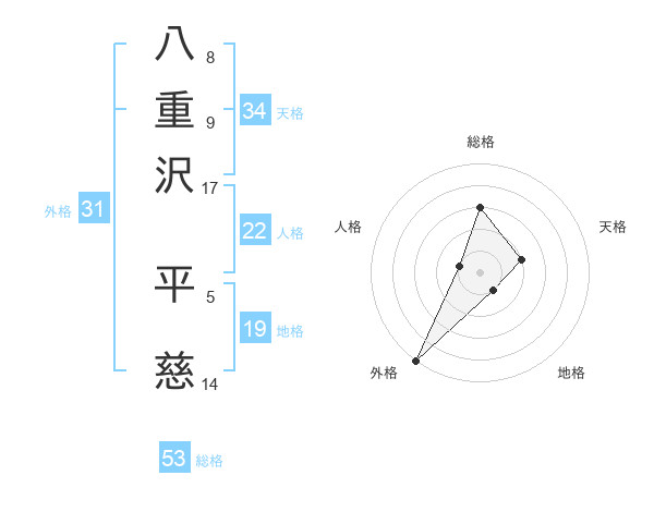 八重沢 平慈さんの総格は53画の3点!