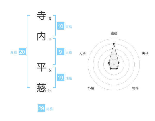 寺内 平慈さんの総格は29画の4点!