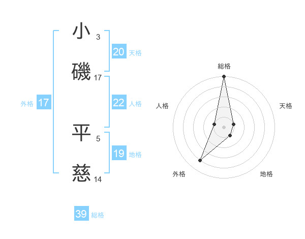 小磯 平慈さんを姓名の画数から五運を鑑定