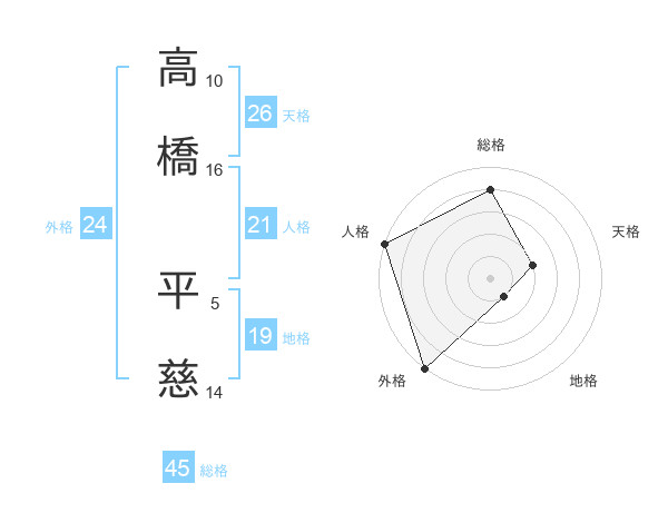 高橋 平慈さんを姓名の画数から五運を鑑定