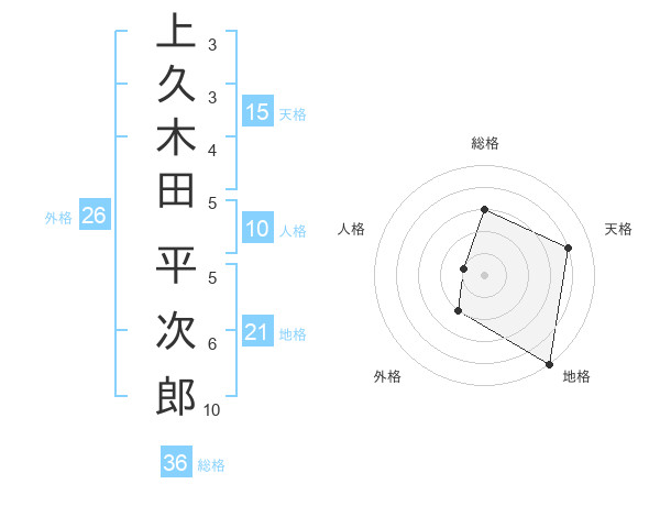 上久木田 平次郎さんを姓名の画数から五運を鑑定