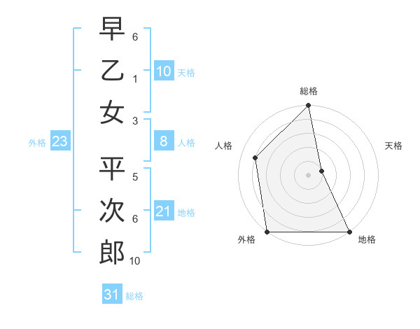 早乙女 平次郎さんを姓名の画数から五運を鑑定