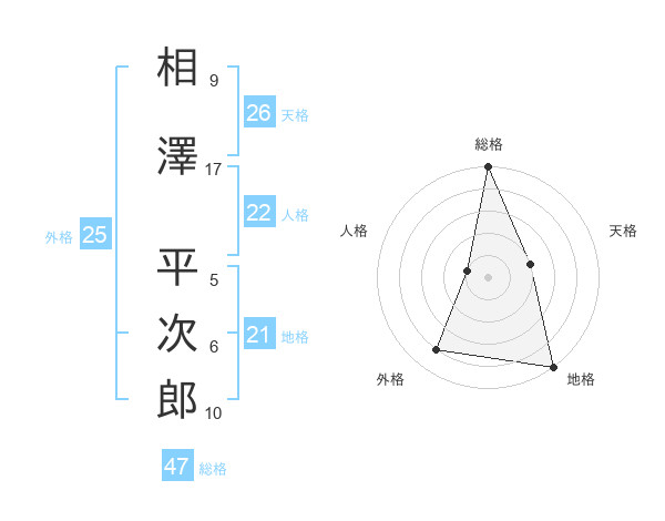 相澤 平次郎さんを姓名の画数から五運を鑑定