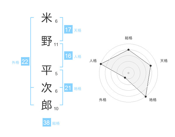 米野 平次郎さんの総格は38画の4点!
