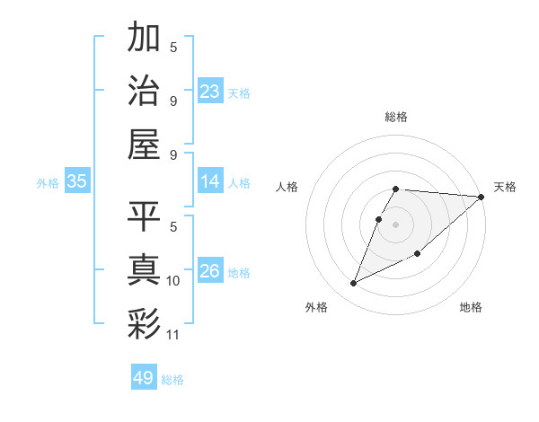 加治屋 平真彩さんを姓名の画数から五運を鑑定