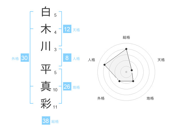 白木川 平真彩さんを姓名の画数から五運を鑑定