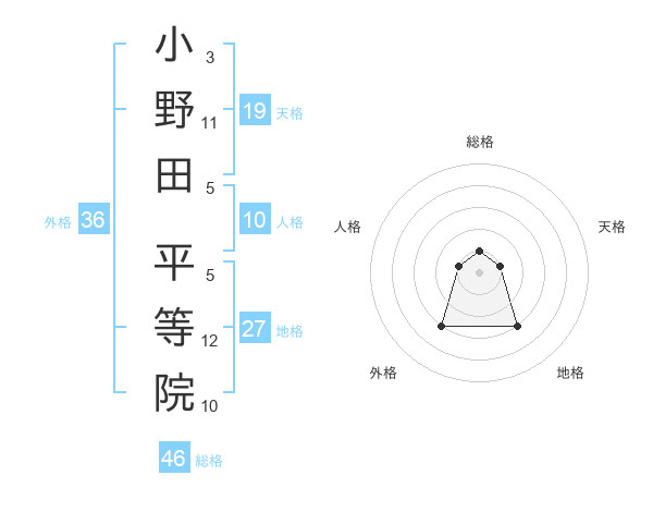 小野田 平等院さんの総格は46画の1点!