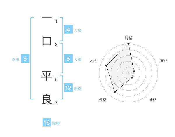 一口 平良さんの地格は12画の1点!