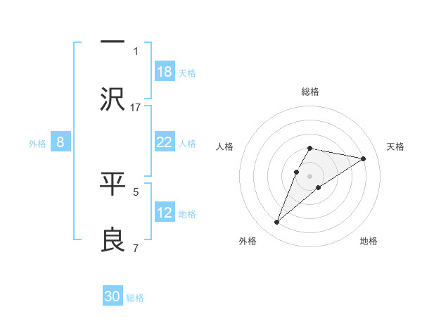 一沢 平良さんの総格は30画の2点!