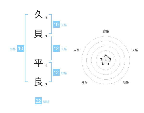 久貝 平良さんの総格は22画の1点!