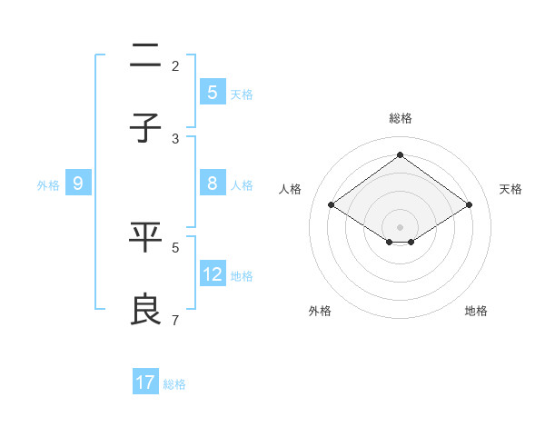 二子 平良さんの総格は17画の4点!