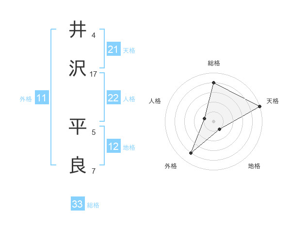 井沢 平良さんの総格は33画の4点!