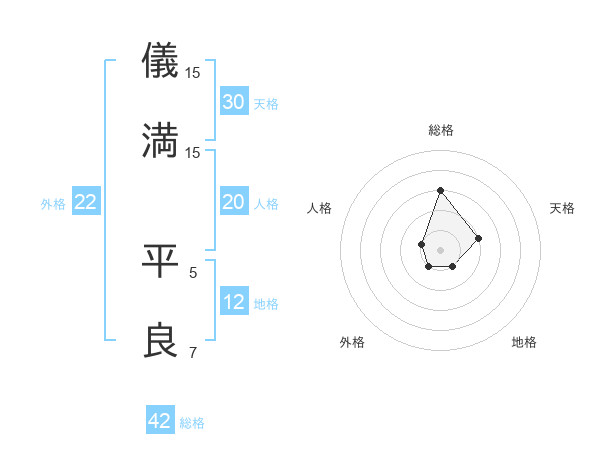 儀満 平良さんの総格は42画の3点!