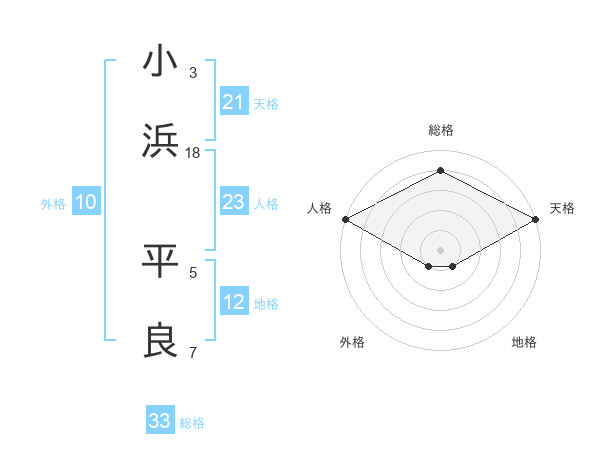 小浜 平良さんの天格は21画の5点!
