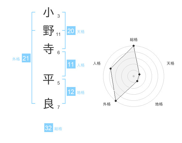 小野寺 平良さんの総格は32画の5点!