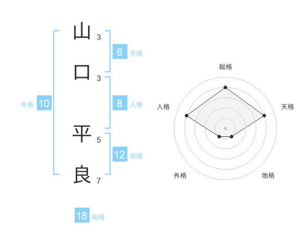 山口 平良さんの総格は18画の4点!
