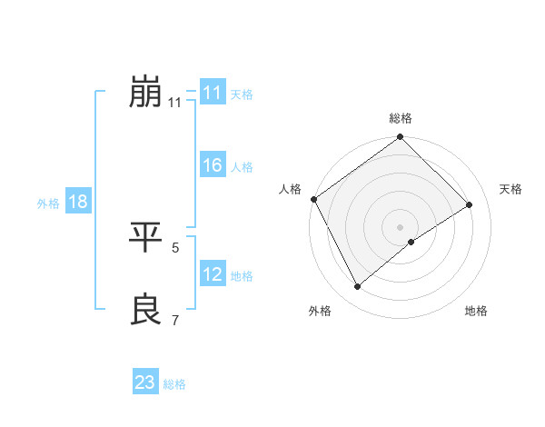 崩 平良さんの天格は11画の4点!