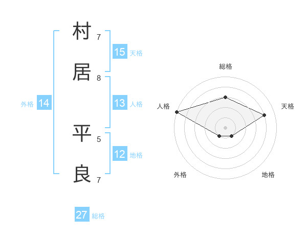 村居 平良さんの総格は27画の3点!