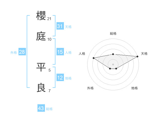 櫻庭 平良さんの天格は31画の5点!