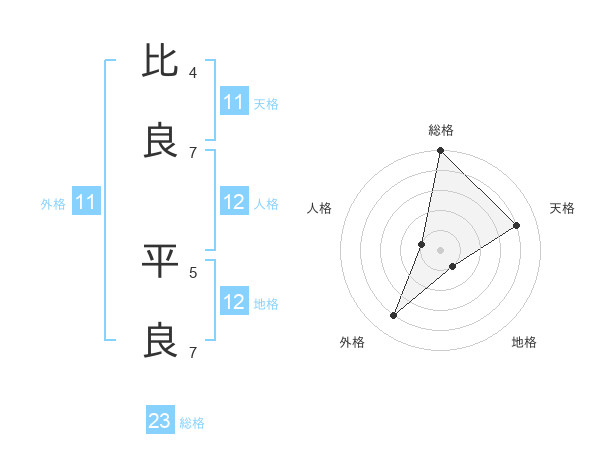 比良 平良さんの天格は11画の4点!