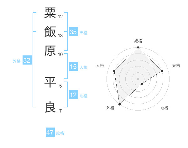 粟飯原 平良さんを姓名の画数から五運を鑑定
