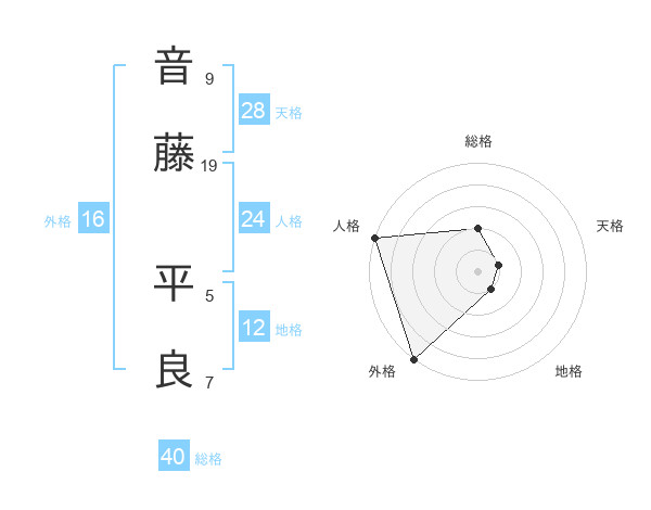音藤 平良さんの総格は40画の2点!