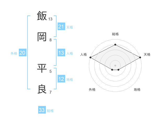 飯岡 平良さんの天格は21画の5点!
