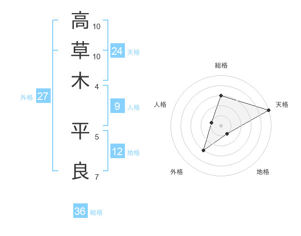 高草木 平良さんの総格は36画の3点