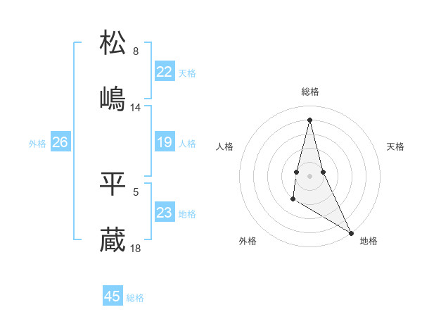 松嶋 平蔵さんを姓名の画数から五運を鑑定