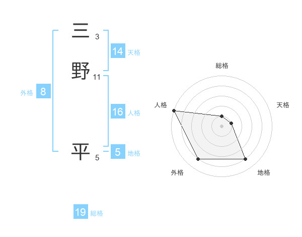 三野 平さんの人格は16画の5点!