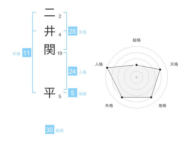 二井関 平さんの天格は25画の4点!