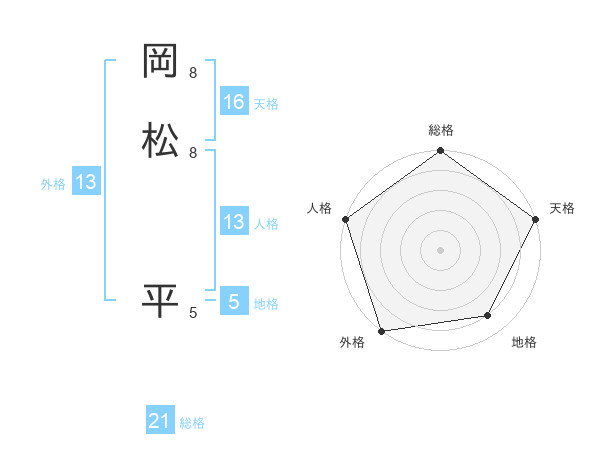 岡松 平さんの総格は21画の5点!
